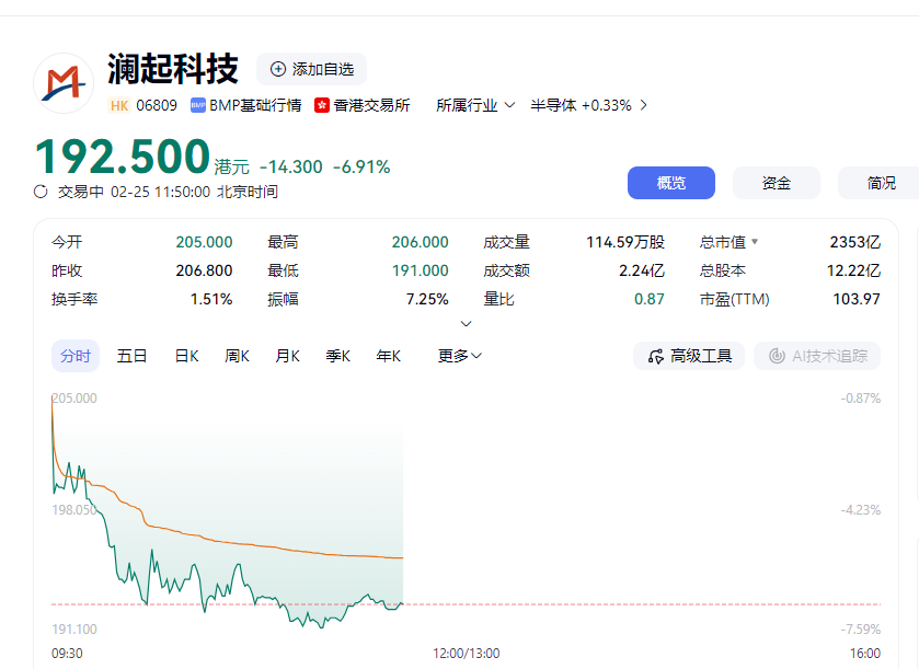 同时,2月25日,A股存储芯片板块盘初大幅下跌,普冉股份(688766.SH)一度跌超8%,兆易创新(603986.SH)一度跌超6%,澜起科技(688008.SH)一度跌近5%,江波龙(301308.SZ)、佰维存储(688525.SH)等个股跌超4%。
