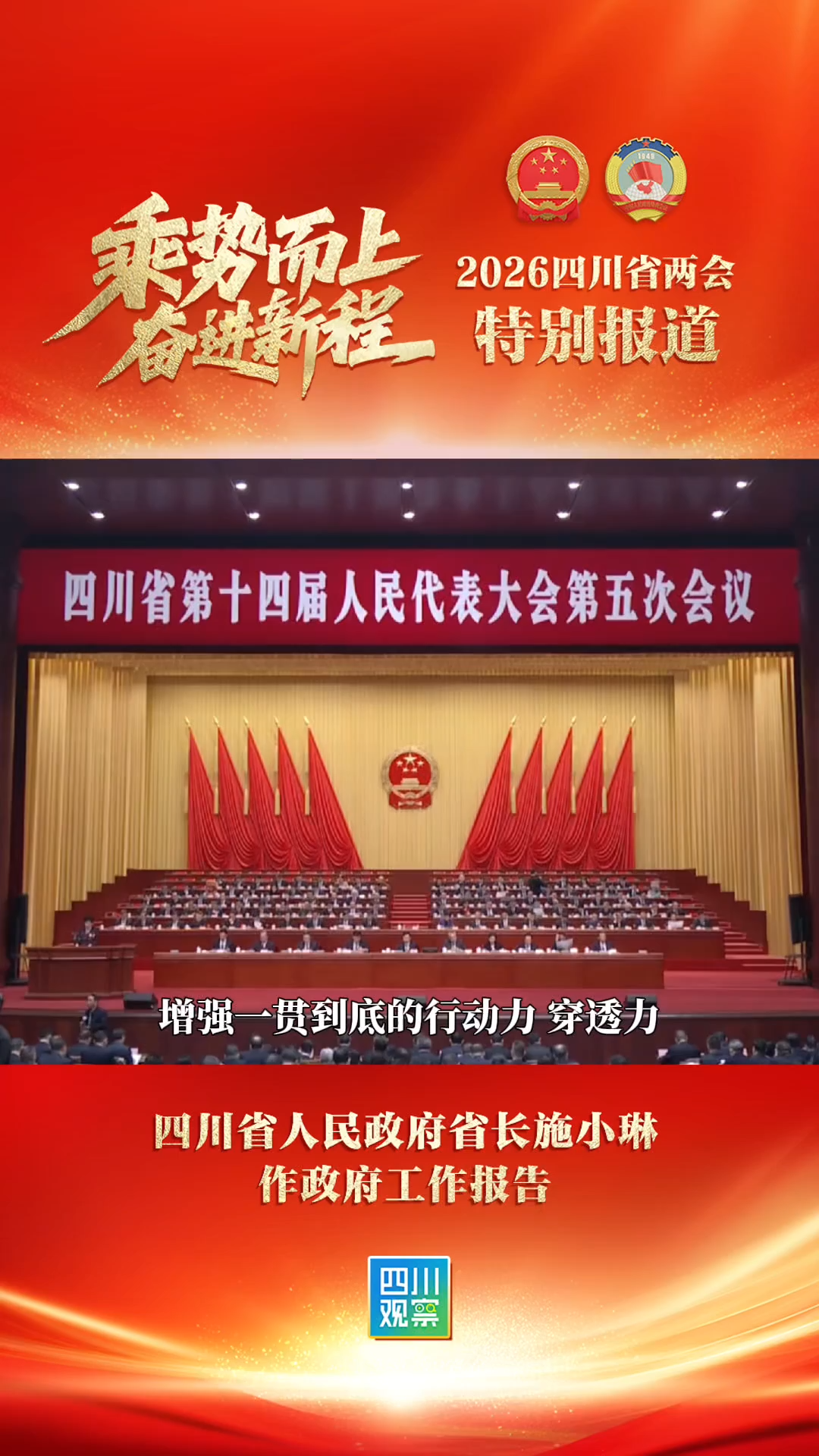 您的浏览器不支持 video 标签。2月3日,四川省十四届人大五次会议在成都开幕,省长施小琳作政府工作报告。报告指出,增强一贯到底的行动力、穿透力,较真较劲攻难关、过经过脉抓具体、见根见底问质效,让每项工作都落下去、实起来、干到位。