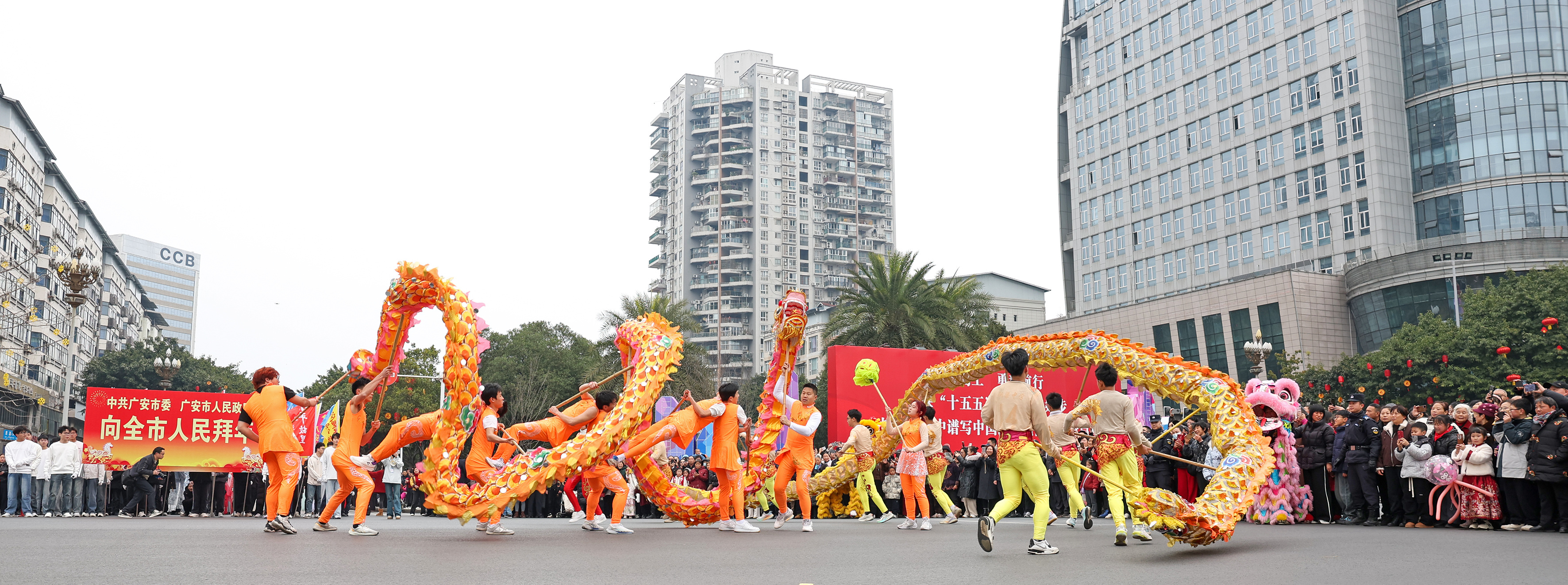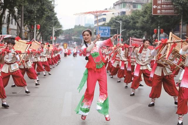 广安主城区,热闹喜庆的“龙腾賨城·狮舞新春——千龙千狮闹新春”民俗巡游活动精彩上演,充分展现广安民俗文化魅力,营造共庆马年新春的热烈氛围。