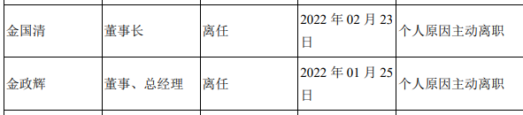简历显示,金国清1947年9月出生,大学本科学历,高级政工师。金政辉1974年1月出生,研究生学历。金平辉1972年11月出生,大专学历。