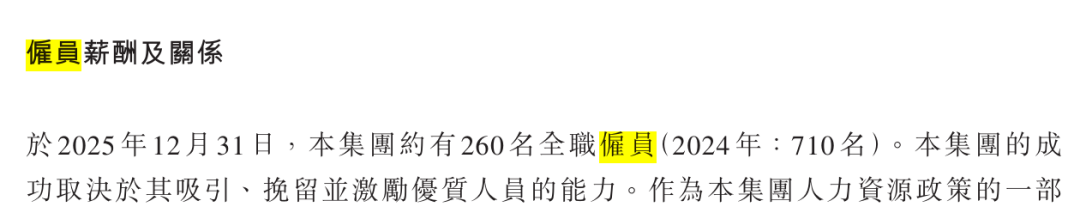 截至2025年底,公司全职雇员已从上年的710人大幅缩减至约260人,研发成本也由2.44亿元锐减44.2%至1.36亿元。