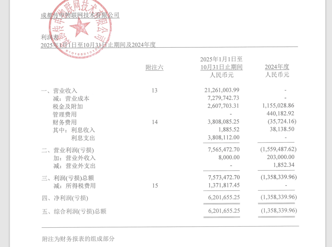 成都传申成立于2022年6月,注册资本1亿元,也从事仓储租赁业务。2025年前10月,成都传申的营业收入和净利润分别为2126.10万元、620.17万元。截至去年10月末,成都传申的总资产和净资产分别为2.29亿元、4411.36万元。