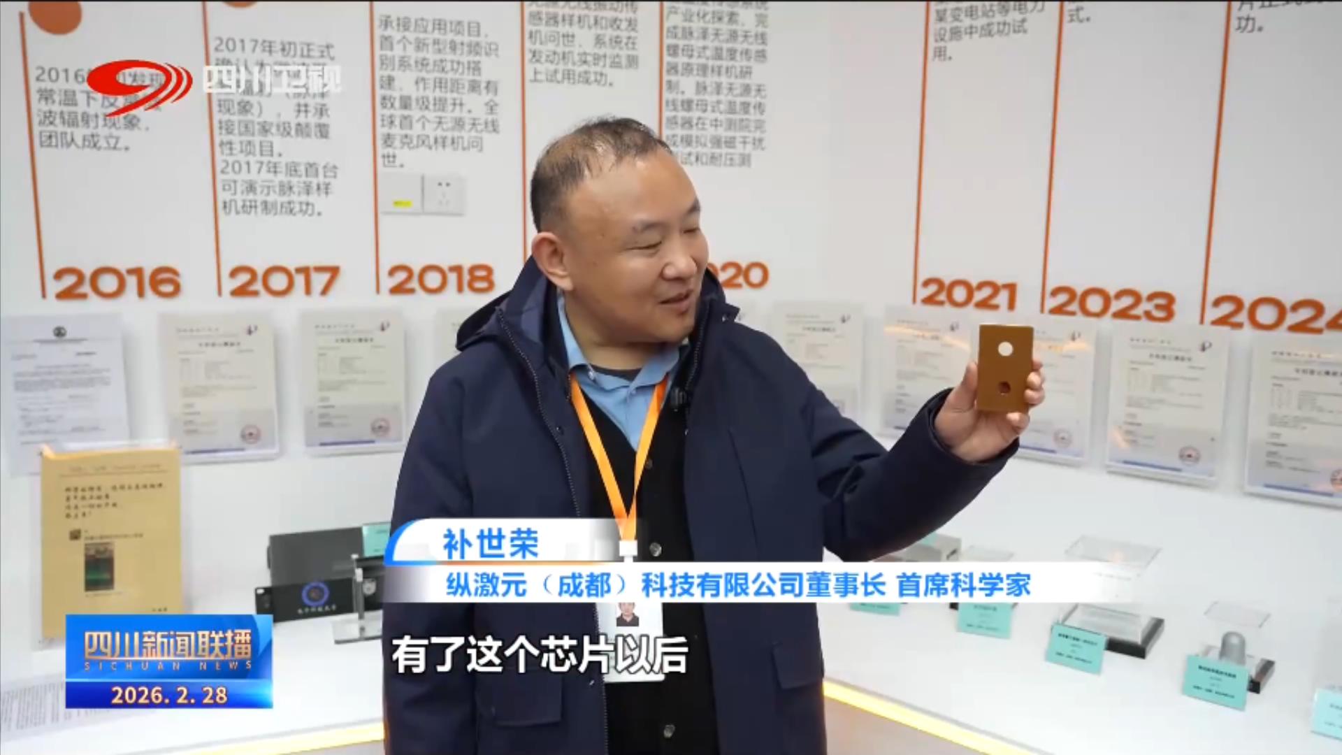 纵激元(成都)科技有限公司董事长、首席科学家 补世荣:比如说水利的发电机组,包括我们的冶炼,包括我们的化工都需要测温。有了这个芯片以后,他们就可以对机组的温度进行全实时的、远程的一个测量和监控。它的响应速度特别快,大概是一秒的万分之一的速度,就可以把它的里面的温度信息给读出来。