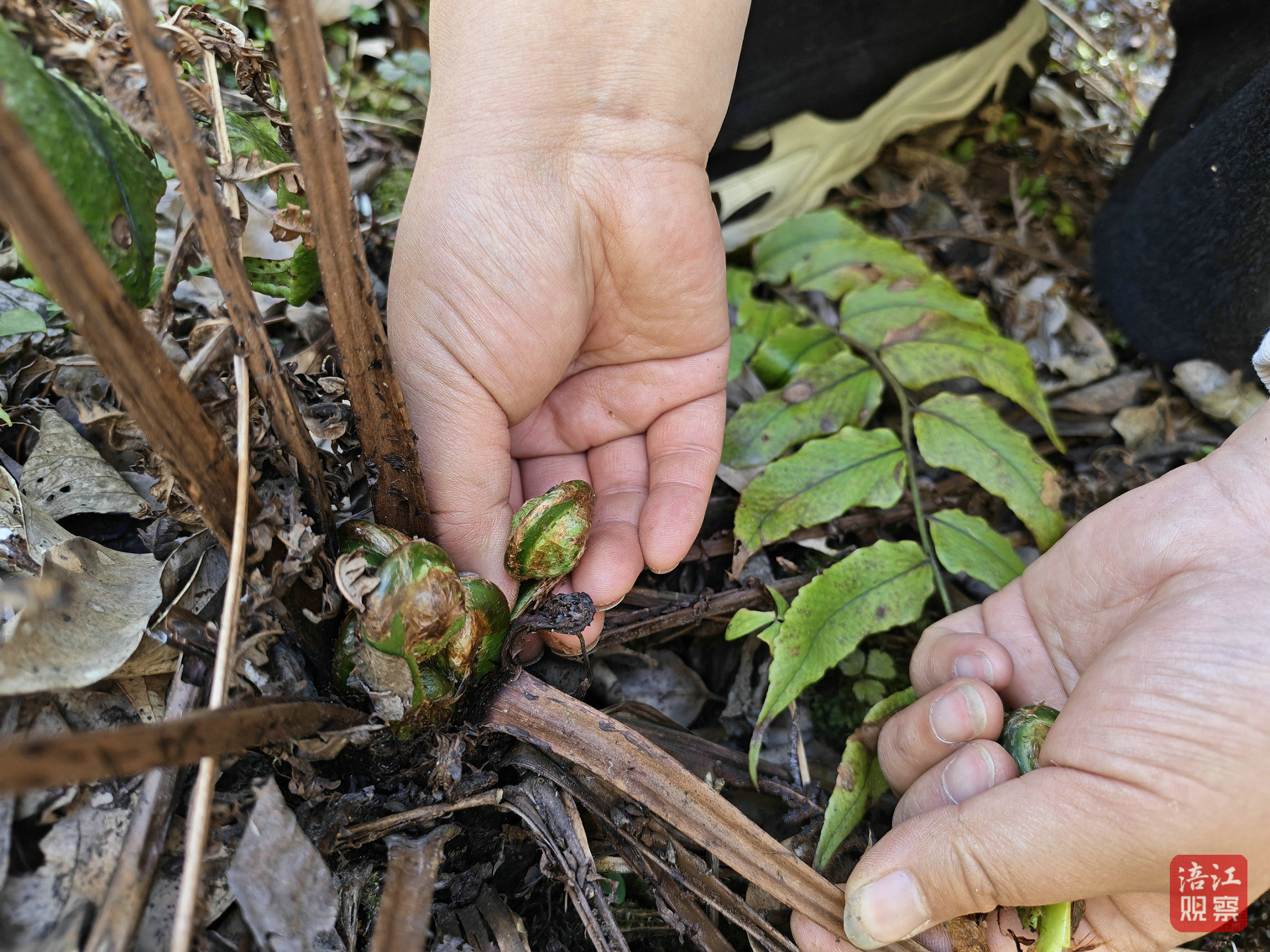 记者跟随吴顺涛一行深入深山采摘,才真正读懂这份“春日鲜”的来之不易——蜿蜒曲折的山路、陡峭湿滑的山壁、近一个小时的徒步跋涉,皆是当地农户的日常。