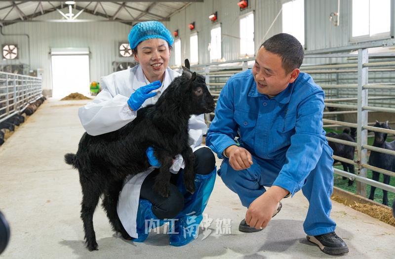 李玉梅(左)走访黑山羊养殖基地