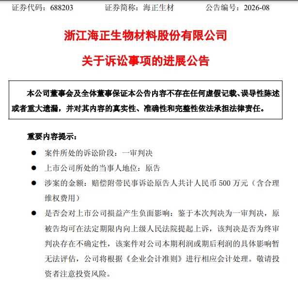 近日,海正生材(688203.SH)商业秘密被侵犯一案迎来一审判决。