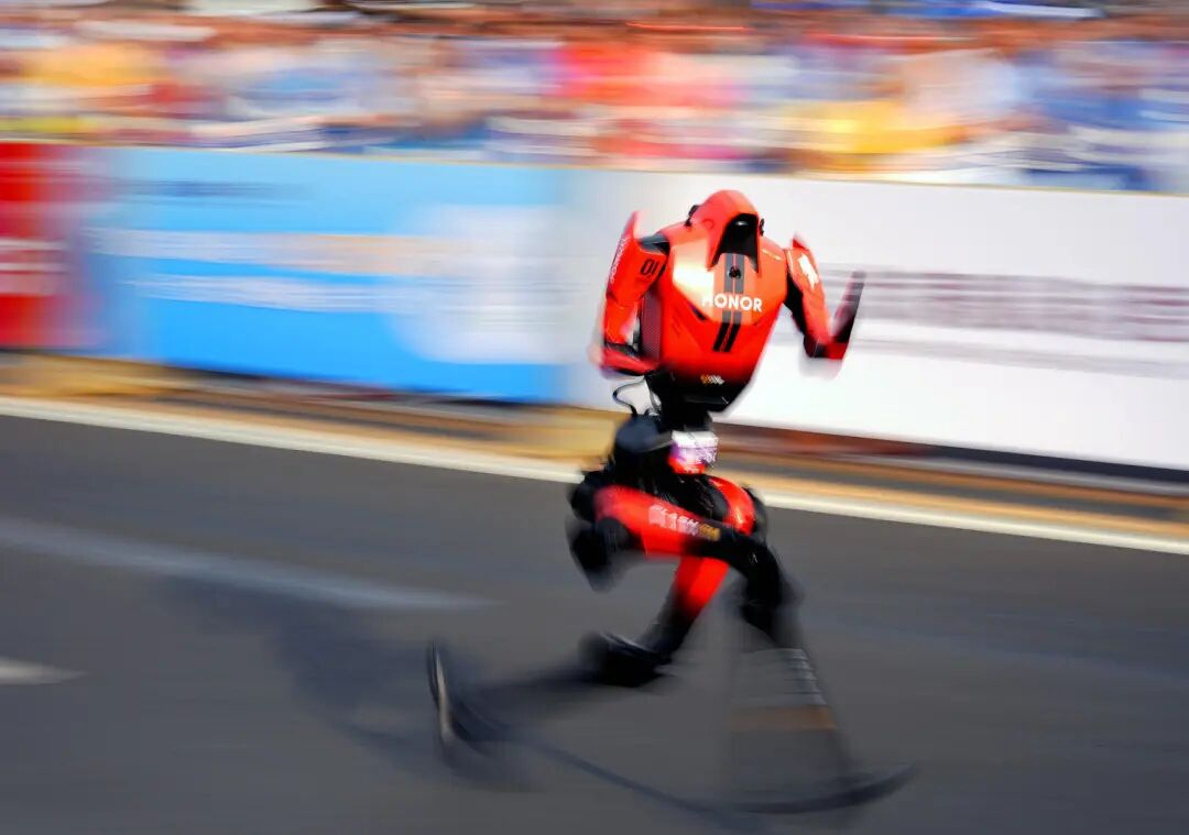 今日,北京亦庄人形机器人半程马拉松比赛中,荣耀自主奔跑机器人“闪电”包揽前三。
