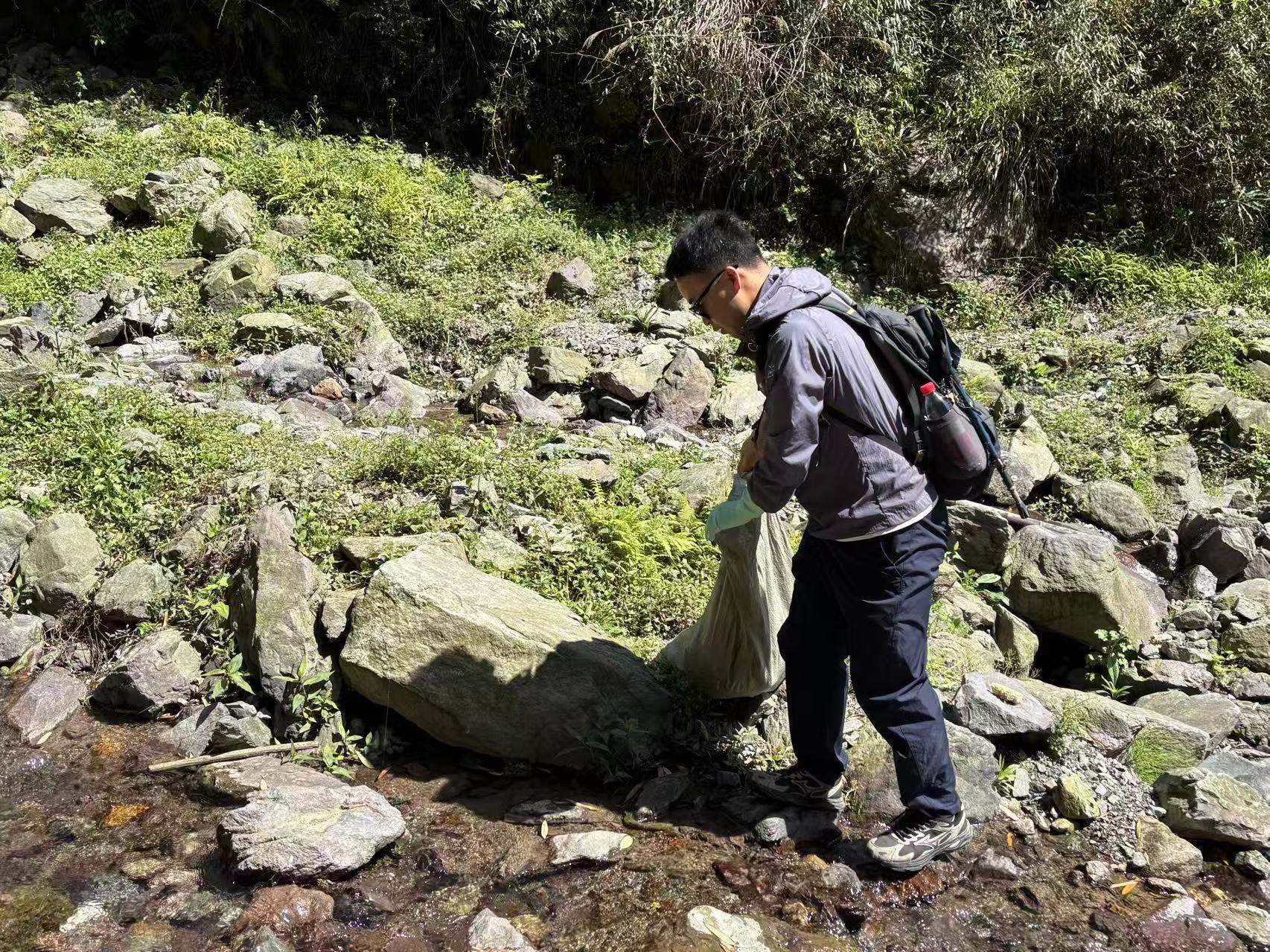 “大家注意脚下,分散开捡,别漏掉石缝里的。”队友威哥简单交代后,队伍便沿着山路散开。弯腰、蹲下、撑开袋口——这些动作在6公里的路程里重复了上百遍。