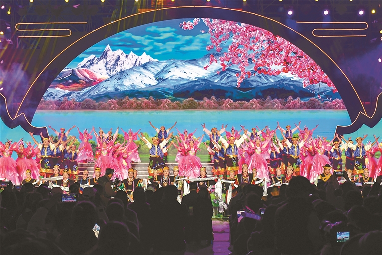 开幕式文艺演出紧扣“人间桃源 幸福林芝”主题,以林芝自然风光为底色,以工布民俗文化为内核,精心编排《遇见·幸福林芝》《南迦巴瓦的春天》《同心万里》等17个节目,融合歌舞、器乐、情景表演、非遗展演等多种艺术形式,全面展现林芝独特的生态之美、人文之韵、发展之盛,奏响了文旅融合、民族团结、奋进发展的春日乐章。