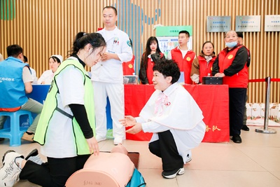 场边,“健康赋能”提供免费体检与应急救护培训,“法治护航”专区解答法律疑问,“便民暖心”服务提供理发、手机贴膜等便利。“惠民消费集市”人气十足,参与者可通过集章兑换防晒用品、骑行护具等消费券,让关爱落到实处。