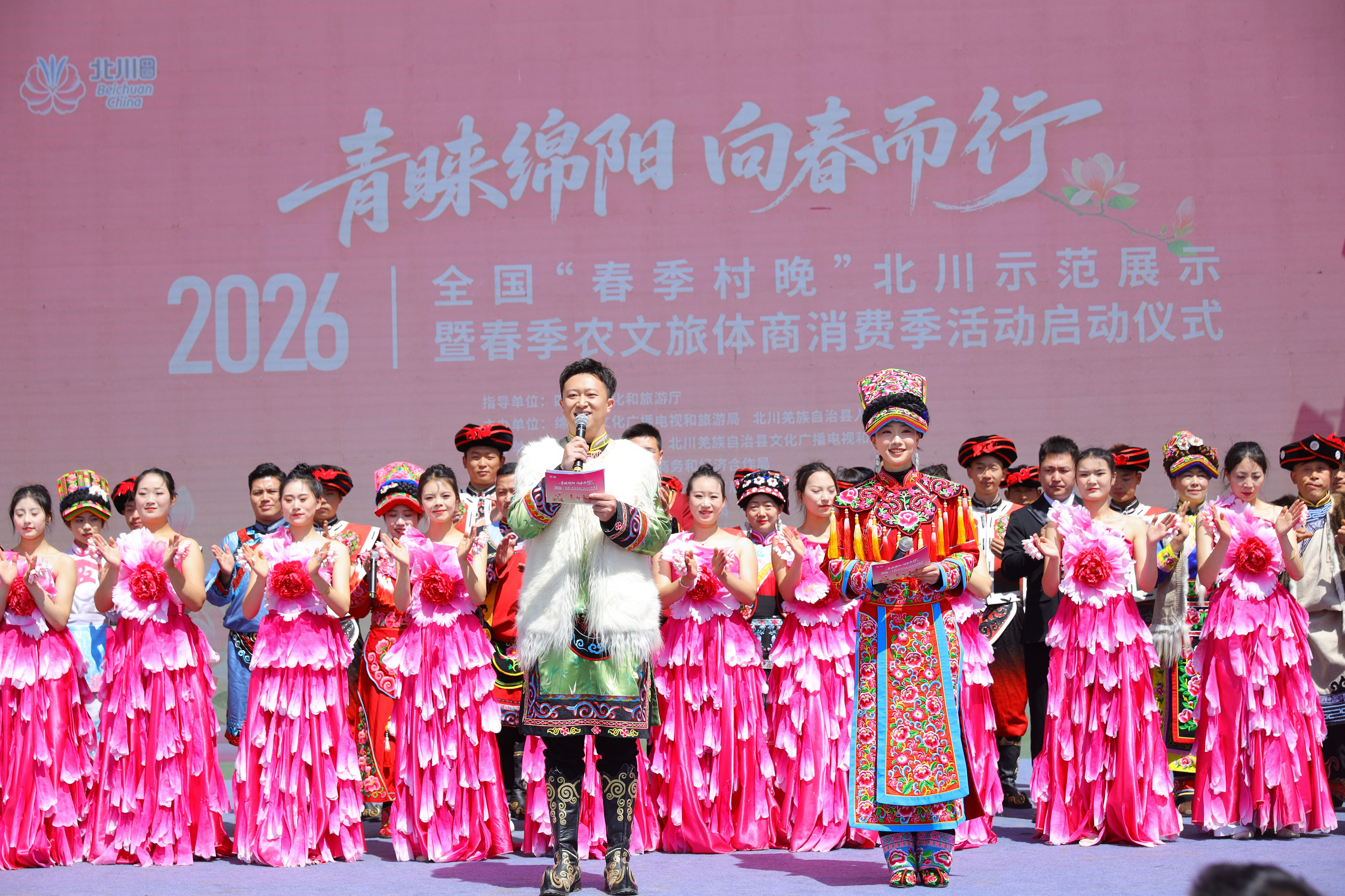 (“青睐绵阳·向春而行”2026年全国“春季村晚”北川示范展示暨春季农文旅体商消费季活动启动仪式现场。)