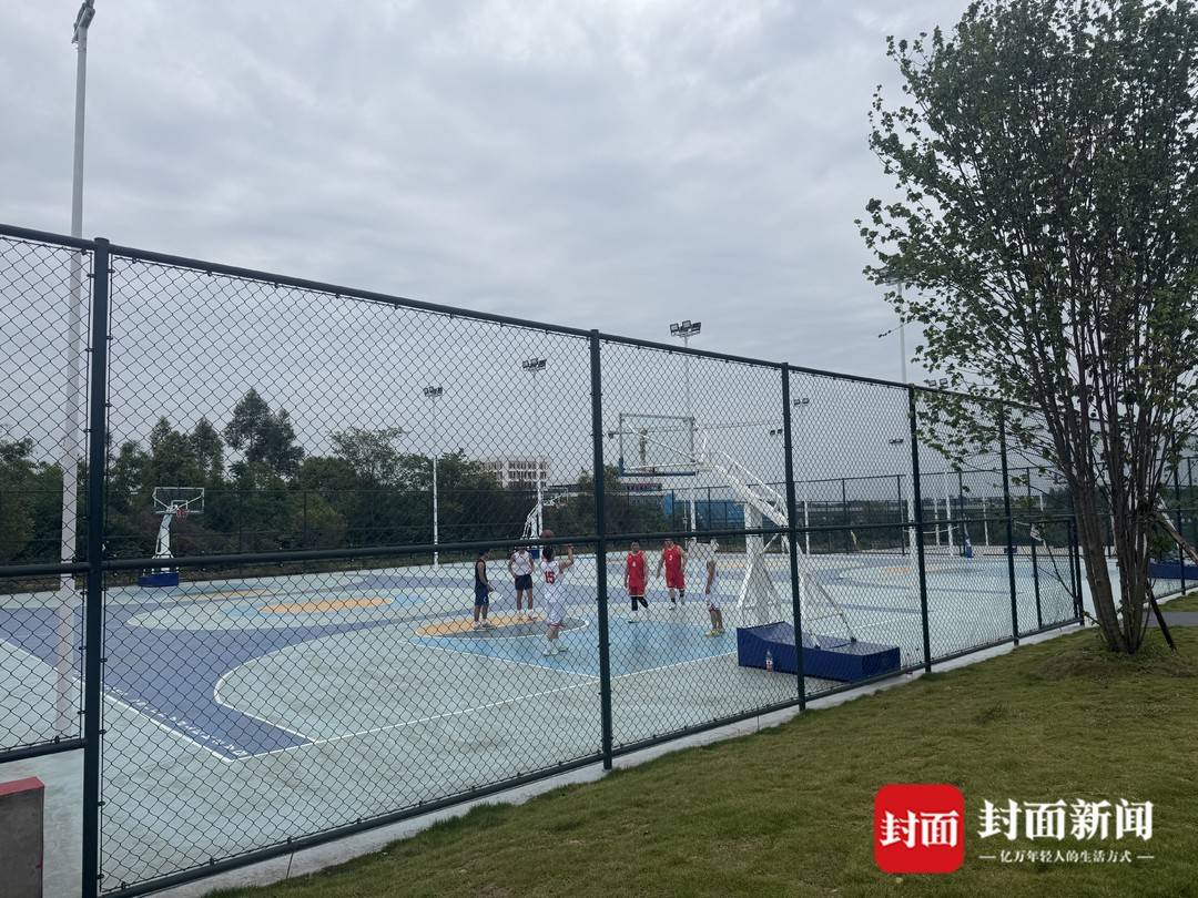 市民们在眉山天府新区体育公园打篮球