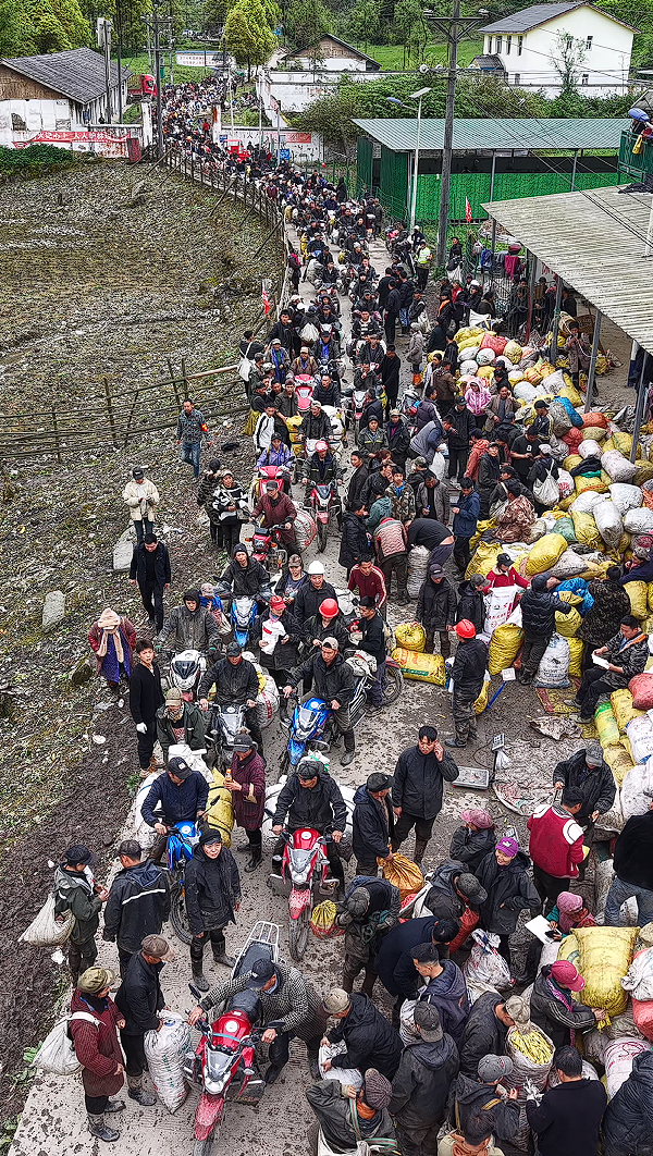 17时许,数千采笋人陆续返回月儿坝临时收购点。大家满身泥泞、略带疲惫,发间挂着竹叶也无暇打理,但摩托车与笋包里鼓鼓囊囊的收获,让每个人都眼神明亮。