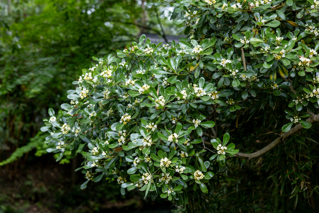 而藏在繁花绿意间的海桐,也悄然迎来盛花期。细碎洁白的小花簇拥在枝头,素净淡雅,不与杜鹃争艳,却自带一身清绝香气。作为别名七里香的它,花香清润绵长,不浓不烈,随风漫过回廊,所到之处,皆是沁人心脾的温柔。