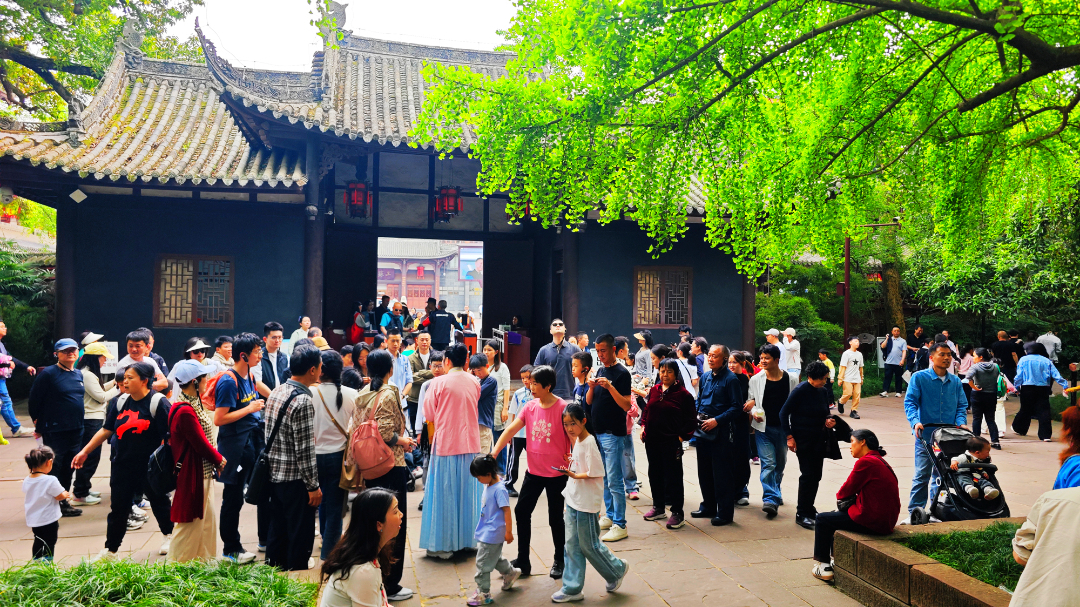 千年古祠被层层叠叠的新绿包裹,古木抽芽,连青砖黛瓦都被染上了温润的绿意,风过处,枝叶轻摇,像是在低声诉说着东坡故里的文脉悠长。