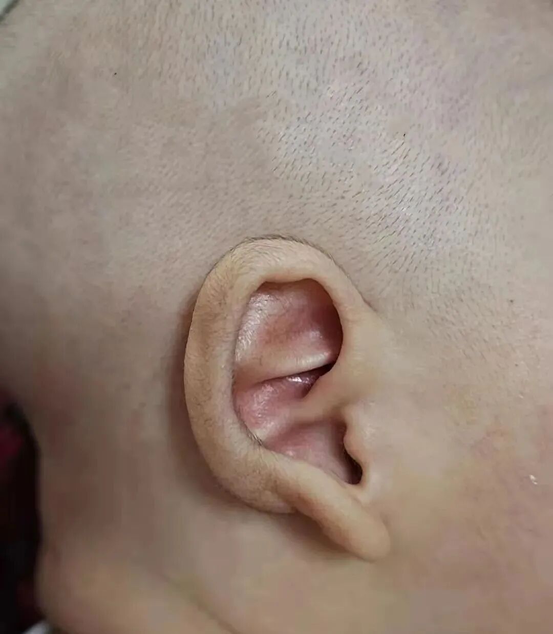 乔乔是一位新手宝妈,宝宝出生后没有发现任何异常,也没有发现耳廓畸形。后来在测听力的时候,经医生提醒,发现宝宝的耳廓有点粘连。本来觉得这个是个小问题,后来在宝宝50多天时,发现还没有多大改善。