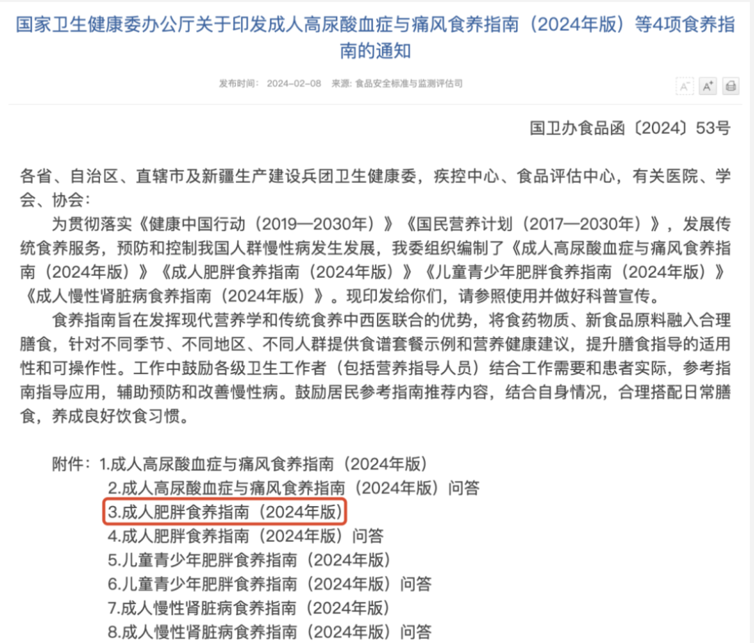 之前,国家卫健委专门发布了《成人肥胖食养指南(2024年版)》,手把手教你科学减肥!