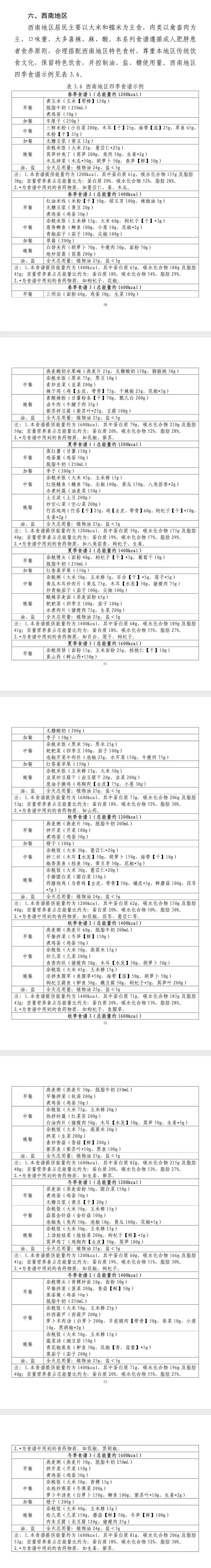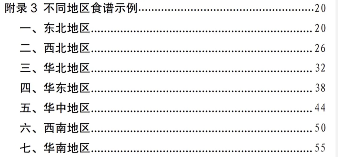 指南中,将食谱细化到了全国不同地区,并备注了食谱的“总能量”。